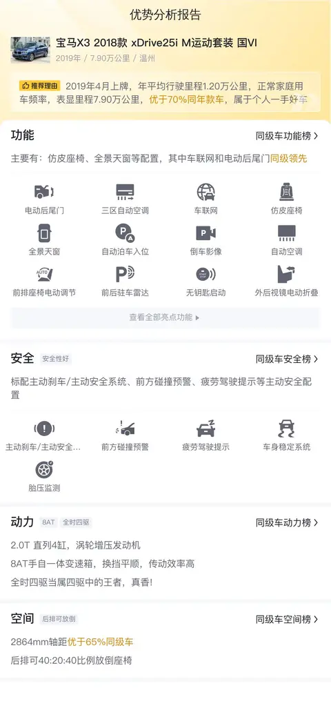 综上所述的新车含税价、用车成本、市场行情、优势分析、同款比价等数据仅供参考。在配置部分,因为二手车非标品,车辆可能会存在配置改装的情况,具体车况信息需要线下结合车辆实际情况进行综合参考。