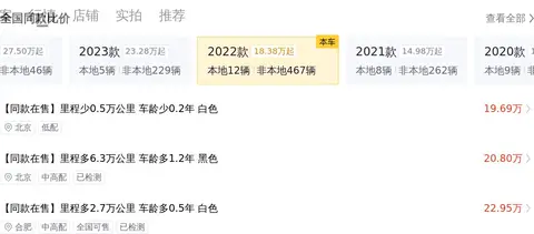 而关于这辆车的价格,目前商家给到的报价为23.8万元。接下来我们看看这款车的二手车行情如何。