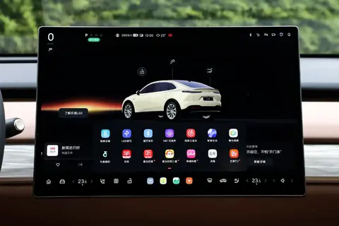 进入到座舱中来看,乐道L60以比较简洁且平整的方式呈现,在取消了仪表盘的情况下,13英寸HUD抬头显示会带来信息辅助显示,而大部分功能都集中展示在17.2英寸3K屏之中,尽管不是所有人都习惯用触控与娱乐来操作车载功能,但8295芯片支持的SkyOS·天枢已经能够完成四区域连续对话交互,搭配后排的8英寸多功能触控屏,习惯之后交互操作确实会比到处找按键来得方便些,基本做到了与蔚来共享。