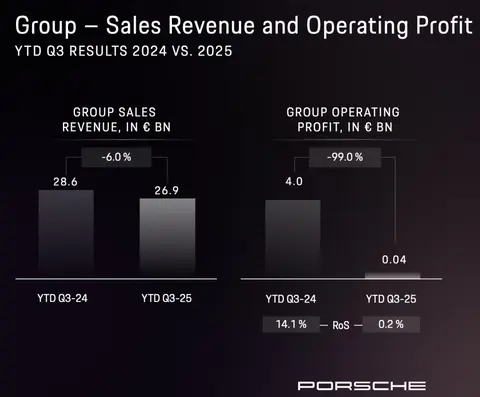 其失速更是直接拖累了保时捷的财务表现。仅2024年前三季度,保时捷因重组产生的特殊支出就高达27亿欧元。第三季度单季亏损9.66亿欧元,直接导致前三季度销售利润仅为4000万欧元,与去年同期的40.35亿欧元相比暴跌99%。这一“断崖式”下滑,让保时捷不得不重新审视其电动化战略的节奏与路径。