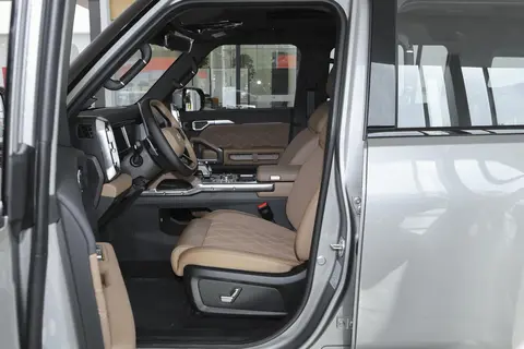 车内的实体按键都是钻石纹理设计,硬派干练,最重要的是方便盲操,在驾驶过程中不用低头看屏幕,提升了操作效率和安全性。另外,车内还有9处力量派软包覆拉手,在越野颠簸路段时,乘客可以抓住拉手保持平衡,乘坐更稳。G318路线饰板氛围灯是个很有情怀的设计,点亮后能瞬间勾起人们的越野欲望,再加上大面积的麂皮内饰,触感舒适,进一步提升了座舱的质感。