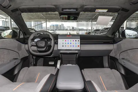 坐进车内,两台车的座舱体验完全是两个方向。先看屏幕和功能:极氪007的15.05英寸2.5K OLED向日葵中控屏是核心亮点,屏占比高达87.24%,还能自动调节角度,开车的时候操作不用探身子。它搭载的是高通骁龙8295芯片,触控响应很丝滑,语音交互也好用,支持全舱自由说,不用唤醒,说句“我有点热”就能自动调空调,导航、听歌这些操作都很顺畅。另外35.5英寸的AR-HUD也很实用,车速、导航指引都能投射在前挡上,不用低头看仪表。