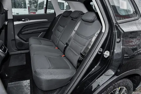 车尾的设计走简洁路线,L 型星耀尾灯和前大灯形成呼应,内部是矩阵式灯珠排列,点亮后效果清爽。后保险杠采用了亮面 + 镀铬塑料双拼熏黑装饰件,隐藏式排气布局让车尾线条整洁,底部的银色护板也强化了 SUV 的硬派气质。铂领型虽然没有感应电动尾门,但常规的电动尾门开关足够日常使用,后备箱开口规整,搬运行李时不用费劲调整角度。