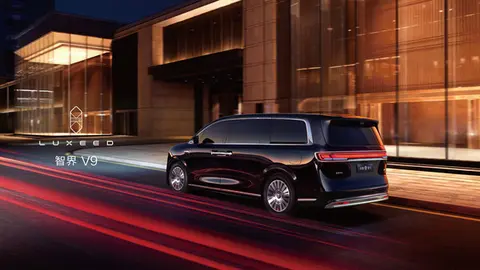 侧面设计,智界V9的车身线条平直流畅,采用标准的双侧电动滑门设计。同时,该车的车窗边框、车门下沿等位置大量使用镀铬装饰,配合多辐条银色轮圈,强调豪华与稳重。车尾设计,智界V9采用了流行的贯穿式尾灯组,其内部设计被官方称为“星钻”或“内嵌百万颗精工晶钻”样式,点亮后极具辨识度与精致感。同时,该车的多条贯穿式镀铬装饰进一步提升了尾部的视觉宽度与层次感。