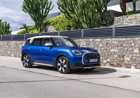 外观方面,新车保留MINI家族标志性设计语言,同时融入电动化专属细节与硬朗SUV气质,整体造型精致又不失气场。前脸沿用经典八边形轮廓,替换为封闭式面板,内部点缀细腻点阵式纹理,搭配中央立体MINI车标,彰显电动身份;两侧多边形LED大灯造型锐利,既延续家族辨识度,又增添现代科技感。新车搭载专属Favoured装饰套件,提供炽热蓝车身搭配活力银车顶的经典双色组合,视觉反差鲜明,风阻系数优化至0.26Cd,兼顾美观与能效。