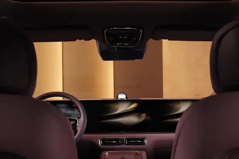 四门轿车和SUV车型均配备独立的仪表盘和信息娱乐屏幕,而智界 V9则采用横跨整个中控台的单一显示屏。中央通道配备两个无线充电板、一个水晶圆盘和外露式杯架。该通道可能还包含一个带加热和制冷功能的储物格。这款MPV的内饰采用天然木材,但制造商自己却声称采用的是Nappa真皮。