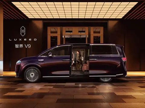 智界V9是鸿蒙智行的首款MPV,将于春季推出,售价50万级。车长5359mm,轴距3250mm,采用2+2+3的七座布局。外观上采用了家族化的设计语言,将首发新一代DLP投影大灯+动态迎宾光毯组合。车侧配备双侧侧滑门、密条辐的轮圈样式、以及传统门把手设计。