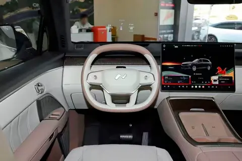 随后咱们来到车内看一看,整个车内几乎都被皮质软包覆盖了,这些皮质材料都是环保的材质,对人体都是无害的而且手感很细腻。多功能方向盘支持电动调节、加热、通风等功能,尤其是到了冬天加热功能会很实用,前面是没有仪表盘的所以看起来很简洁,不过车里有35英寸的抬头显示,在开车的时候可以直接开车辆的一些信息。中间这里是17.2英寸的中控屏,采用高通骁龙8295芯片,车机使用起来很丝滑,车机的功能也是特别多的,支持高德导航出行方便,语音识别控制很灵敏,在开车的时候可以省去我的手动操作。乐道L90的车机界面很简洁,壁纸都可以自己更换,OTA升级也可以远程完成。面部识别和声纹识别都支持,可以用来辨别我的身份,在中央扶手这里有手机无线充电板,下面是一个镂空的设计。车内标配了行车记录仪,中间这里是一个防眩目后视镜,在晚上开车的时候会安全很多,两边的化妆镜自带了照明的功能。