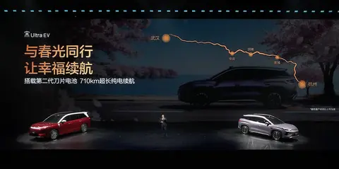 能做到这一点,靠的是比亚迪新发布的第二代刀片电池。能量密度更高了,续航直接拉到710公里。官方给了一个场景:4月从杭州出发去武汉看樱花,全程不用补电。长续航+快充,确实是目前纯电出行的最优解。