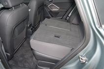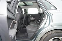 座椅采用了皮质和翻毛皮混搭的设计,而且是运动风格支持电动调节。这一风格看起来也比较符合外观的设计,但是坐垫偏硬,仍然是奥迪的特点,舒适度表现一般,座椅两侧的包裹性比较到位,另外就是电动调节的角度很多。我身高180cm乘坐后排,腿部空间还能有两拳多的距离,头部空间也剩下一拳,整体表现比较宽敞,进步很大,更加符合家用的需求。并且第二排座椅支持前后调节和靠背调节,前后移动的幅度有10cm左右,这项功能确实比较实用,能够满足不同人的需求。另外就是中间地板的凸起仍然比较高,算是一点遗憾。后备厢表现中规中矩,符合紧凑型SUV这个级别车型的主流表现。配置方面,有电动后备厢功能,并且后备厢里还有一个12V电源。后排座椅的放倒形式为4/2/4,在空间多样性上要好过4/6比例放倒的车型。