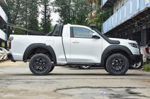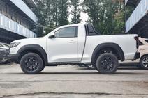 它的身材太魁梧了,前脸巨大的梯形中网相当霸气和突兀,用上了全LED灯组倍感意外,夜间照明度顿时提升了很多,侧身非常饱满,底盘离地间隙达到了232mm,而且轮胎宽度为265mm,保证了出色的抓地力和制动性能,后车门依然比较短,开门角度不算很大,上下车总感觉有些不方便,尾部看点还是集中在尾灯组上,LED光源带来良好的辨识度,后斗子打开之后,还是有点高的,上下同样不太方便,但作为皮卡车来说也不能要求太高,可以最大480公斤的物品。