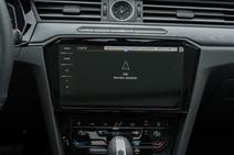 内饰整体风格继承德系车型的设计风格精致高档,车内用料上乘,多数地方采用皮质包裹,质感很好,车中最亮眼的当属中控屏了,9.2英寸的中控屏,触控反应敏捷,容易上手,新的多媒体系统反应速度更快,左侧的触控按键可以快速的切换常用的界面,用起来很方便;值得一提的是倒车影像非常清晰,反应灵敏。虚拟的标尺线和虚拟的360度的雷达警示区集成在一个界面,非常直观,安全性高。这样在倒车的同时,尾部和周围的障碍物都可以清晰可见;很多车辆不能同时实现倒车影像和虚拟倒车雷达界面同时显示,这样就会带来视觉盲区。这也算是迈腾一个小小的安全功能吧。
